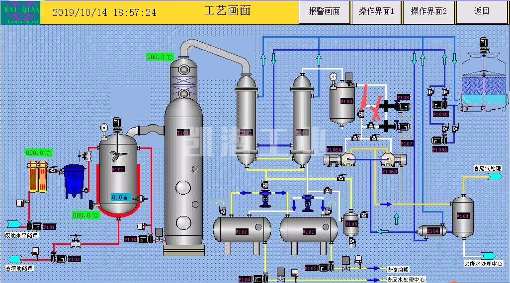 廢原料油是多種烴類的復雜混合物,減壓蒸餾原理是根據(jù)混合物的沸點的差異蒸餾分離,利用汽化催化技術(shù),將混合物切割成不同餾程范圍餾分,原料油加熱后以汽、液混合狀態(tài)進入分催化塔,在汽化段,汽相與液相分離,汽相進入蒸餾塔的分餾段,在塔內(nèi)由下至上每經(jīng)過一塊塔盤(或 填料)便與塔盤上液相發(fā)生一次傳質(zhì)、傳熱的過程。