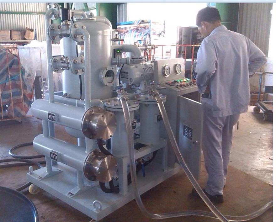 真空濾油機是減壓分離,精密機械濾芯過濾,真空干燥的原理。當(dāng)需要處理的油進入通過粗過濾后加熱,除去油中大水分然后再進入蒸餾塔進行液化到霧化,霧化到液化的過程,在減壓的狀態(tài)下進行蒸餾油中水分,并將油中雜質(zhì),氣體,油離碳等。真空濾油機現(xiàn)升級減壓過濾系統(tǒng)及控制系統(tǒng),在現(xiàn)有技術(shù)上改革創(chuàng)新,減壓分離效果俱佳。如圖: